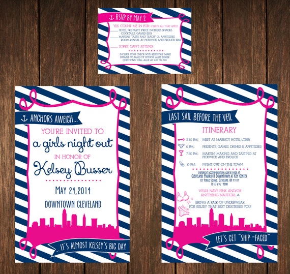 Nautical Themed Bachelorette Party Invitations. Bachelorette party invitations should be sent out at least four weeks in advance. Make custom invitations and announcements for every special occasion! Party favors are never mandatory but if you have the budget for it, a small parting gift is a thoughtful memento. Navy nautical anchor on burlap bachelorette party invitation | zazzle.com.