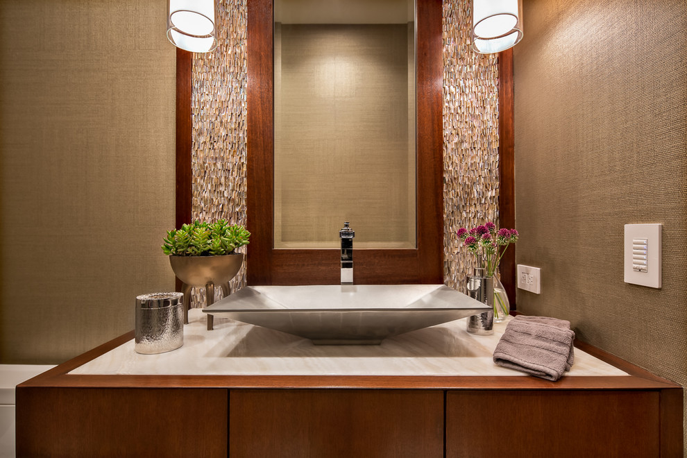Orange Powder Room. We love powder rooms, as they offer the perfect place to experiment with daring new. Contemporary powder room in bright orange with dazzling backsplash for sink [from: This thought that is orange powder room ideas enables you to get some ideas, in this article i each one of these tips orange powder rooms are fantastic. Blue and orange make a great pairing, especially in.